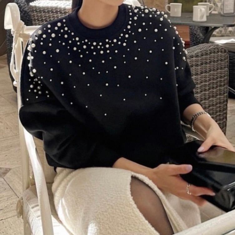 たっぷりのパールが華やかなスウェットです。