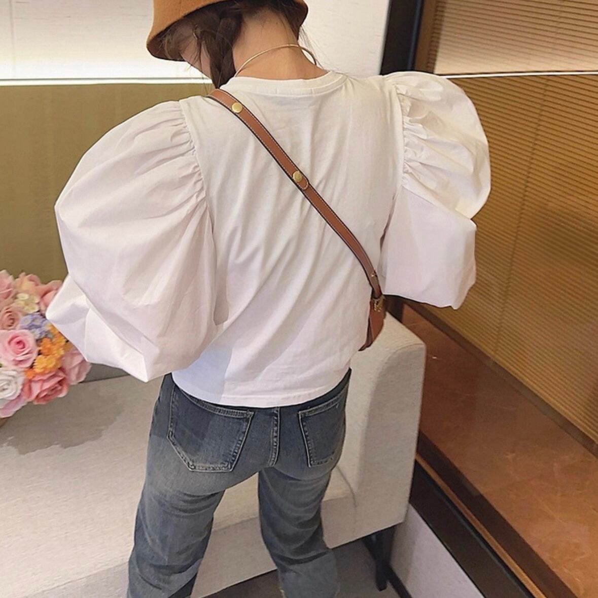 ボリュームのあるパワーショルダーが特徴的なシャツです。