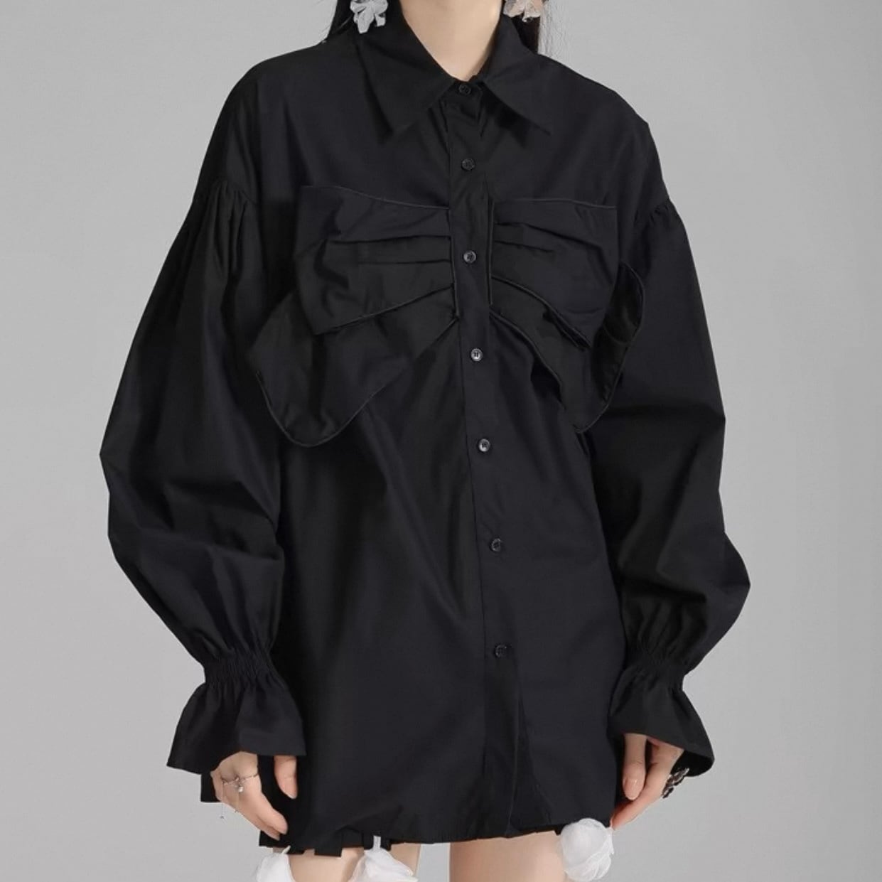 フロントにある大きなリボンがポイントのシャツです。