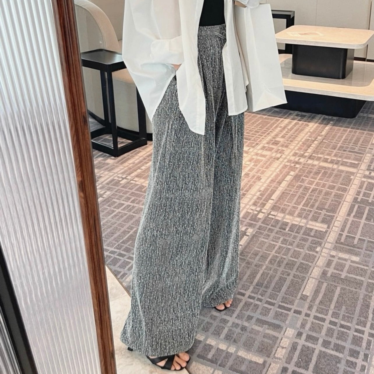 ウエストゴムで、楽に着用できるのにおしゃれな雰囲気に。