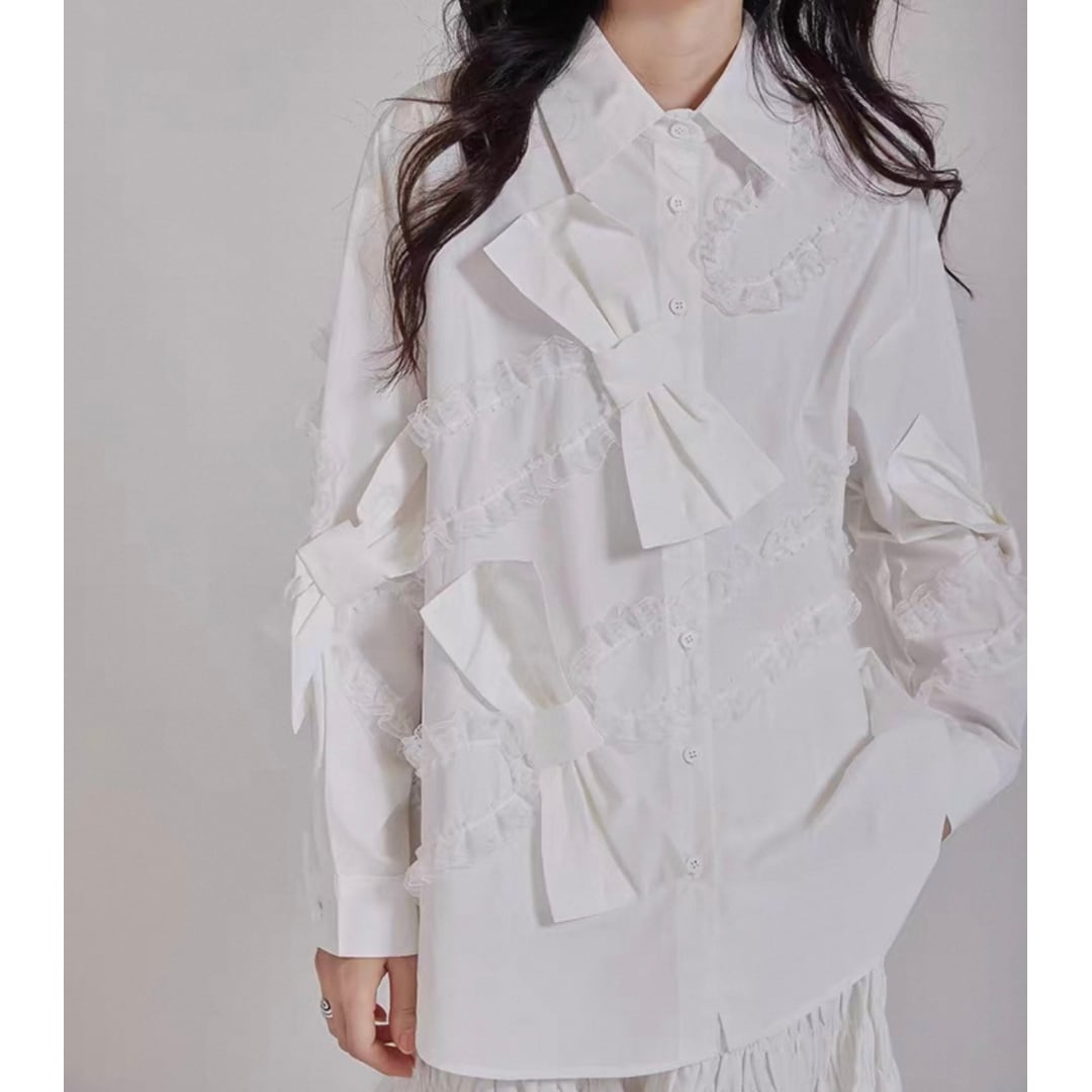 大きなリボンとチュールラインが可愛いシャツです。
