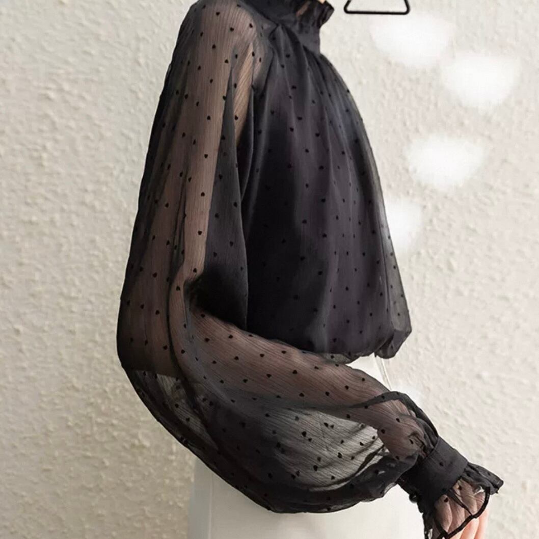 シアーでふんわりしたお袖が大人可愛いブラウスです。