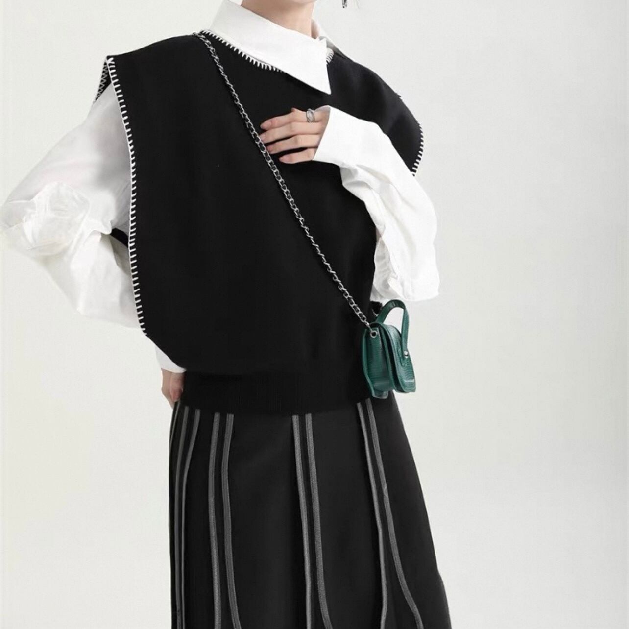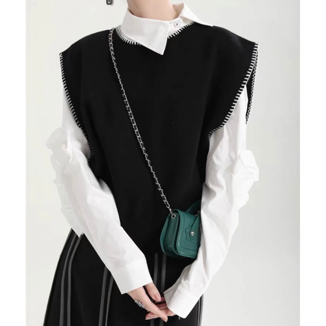 バイカラーのステッチが可愛いベストです。