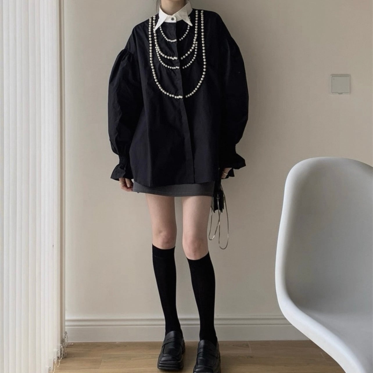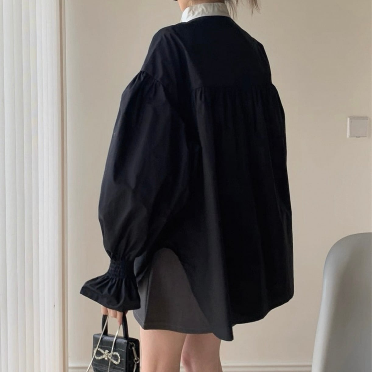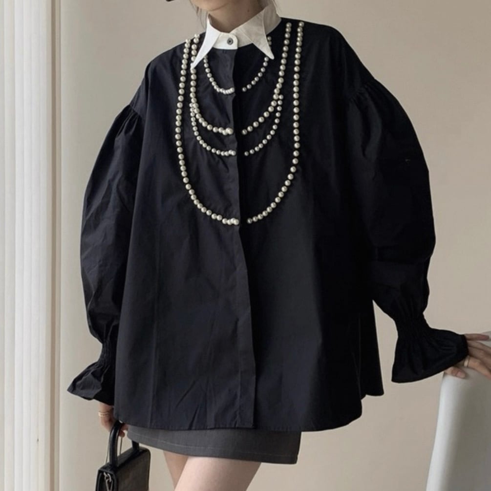 パールラインパフスリーブシャツ 2color N00233