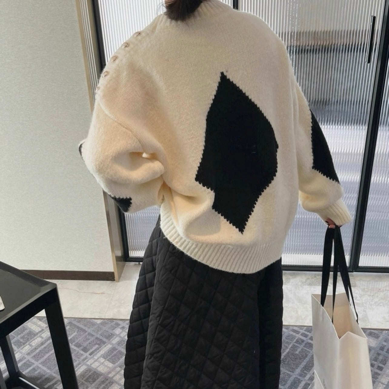 ショルダーボタンダイヤニット N00267