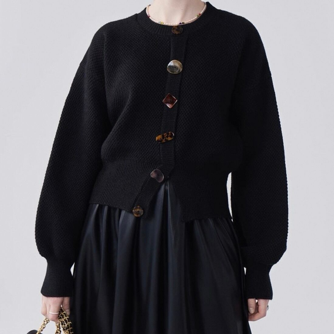 ブラウンマルチボタンニットトップス N00284