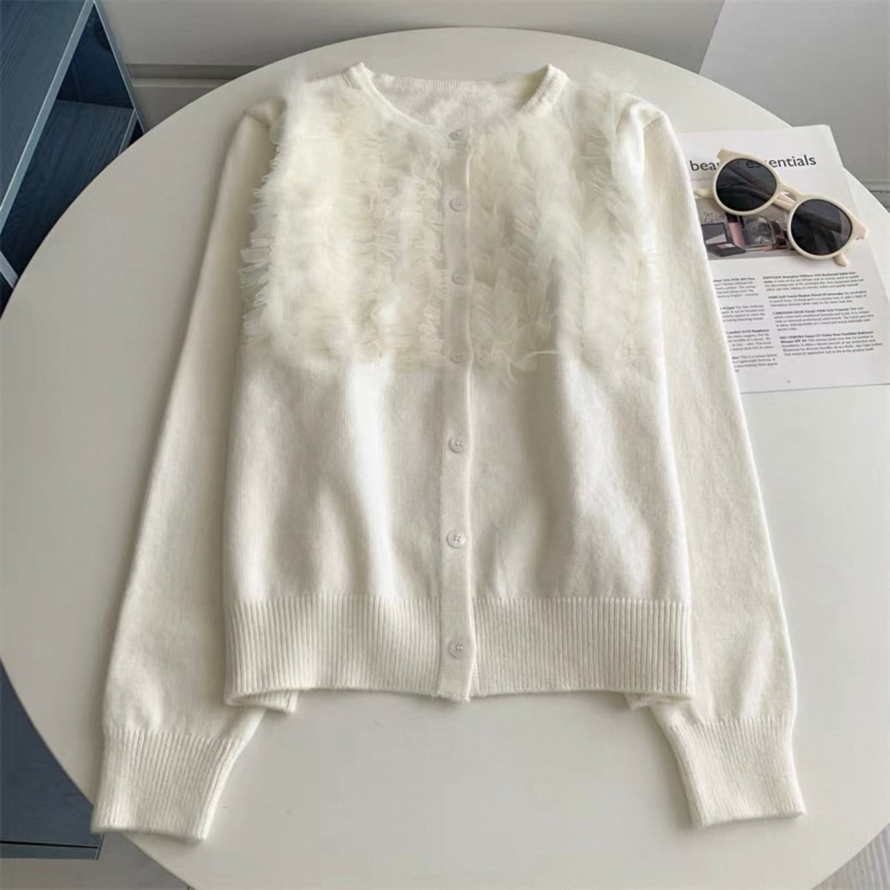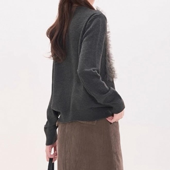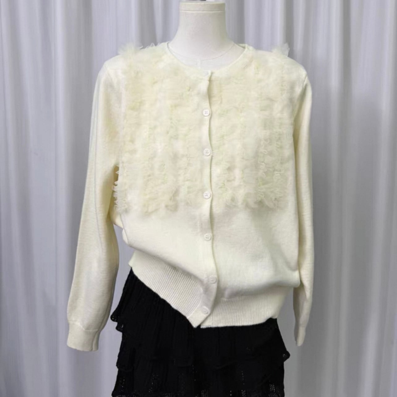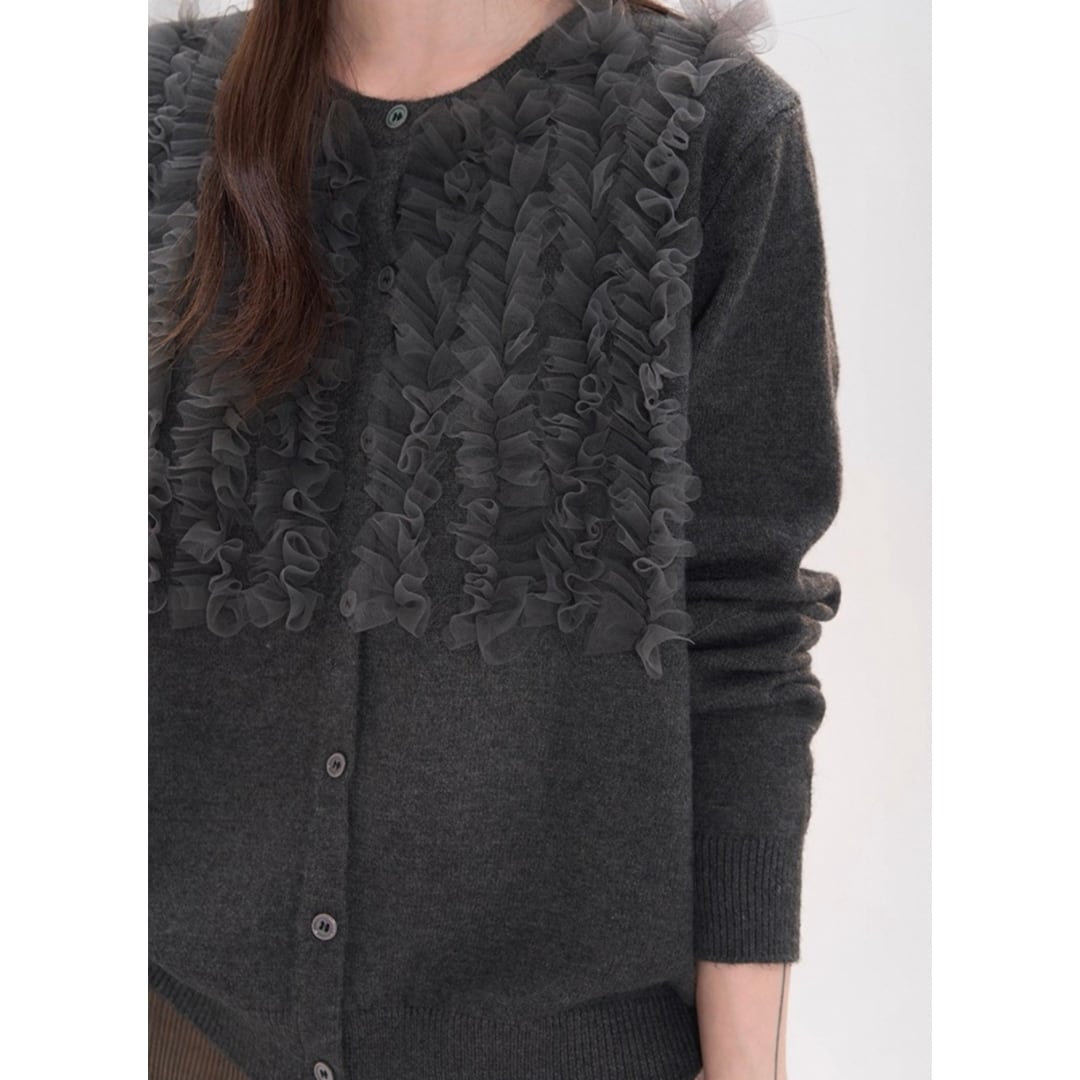 チュールが可愛いカーディガン。