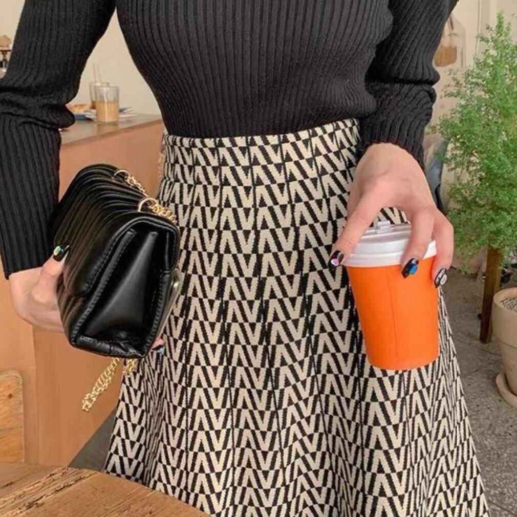 Vロゴモノトーンロングニットスカート N00298