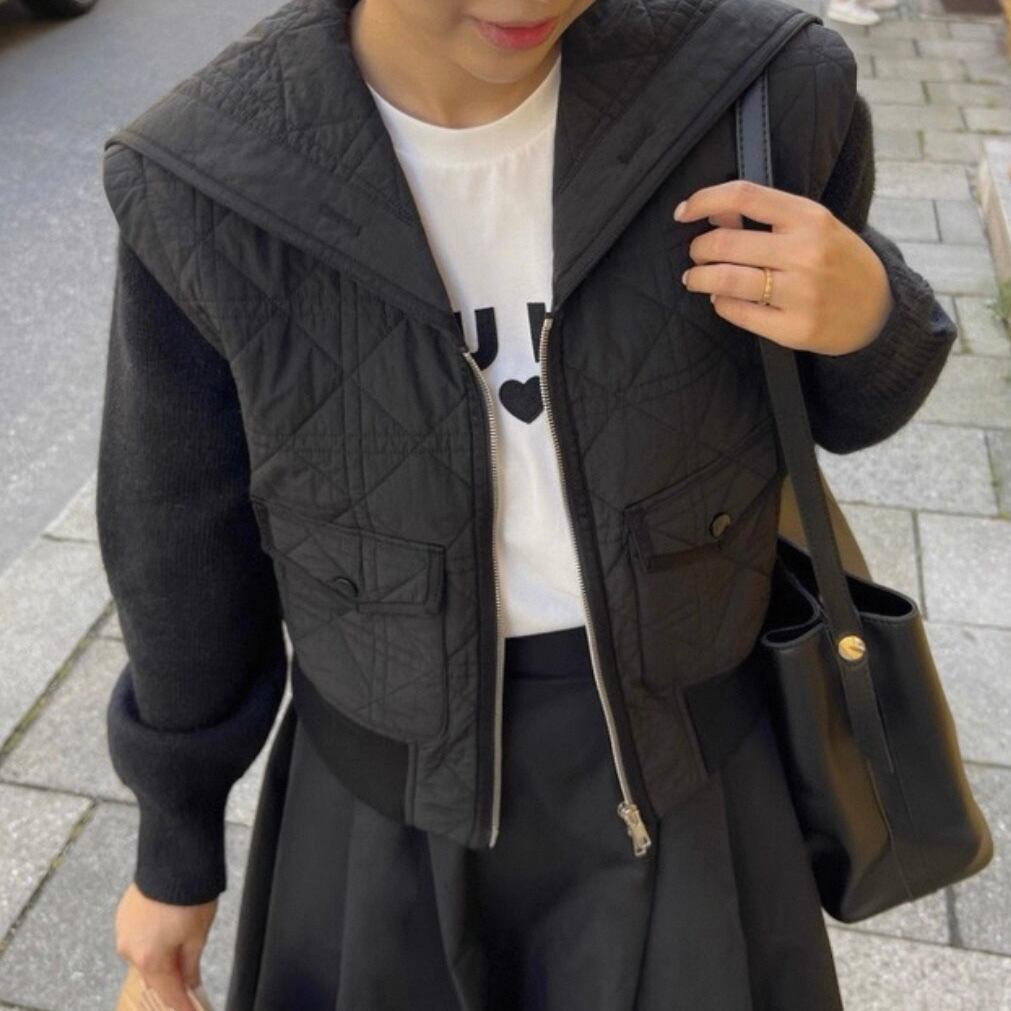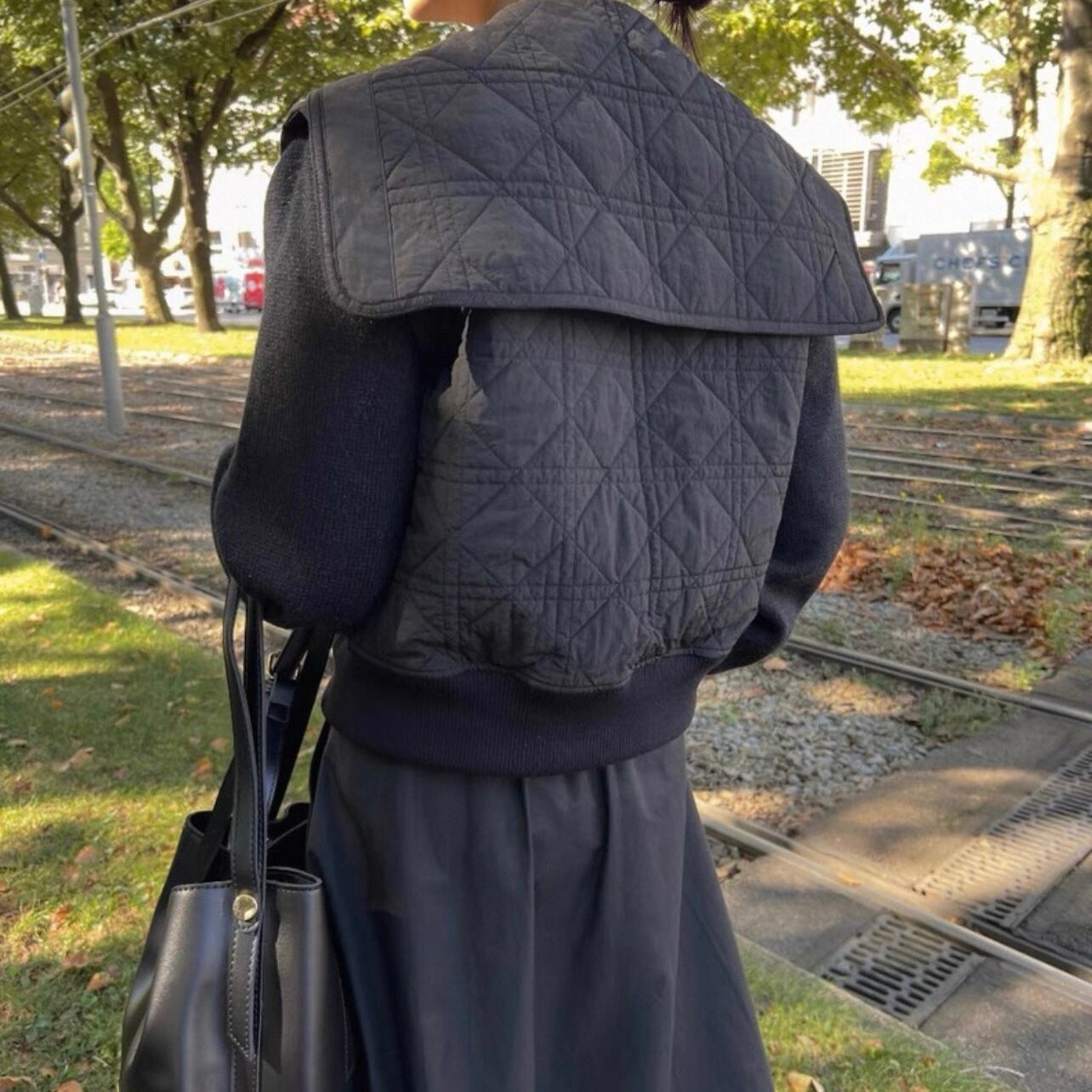 キルティング模様と大きめのカラーがアクセントになってくれます。
