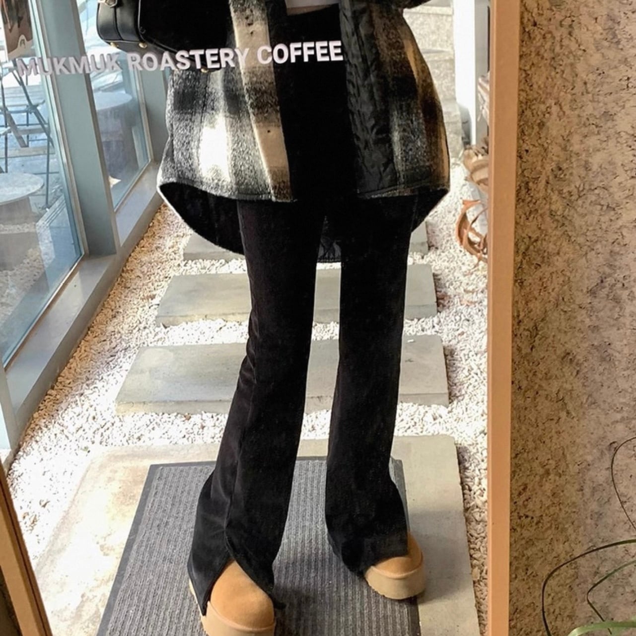 ベロアの雰囲気がおしゃれなパンツ。