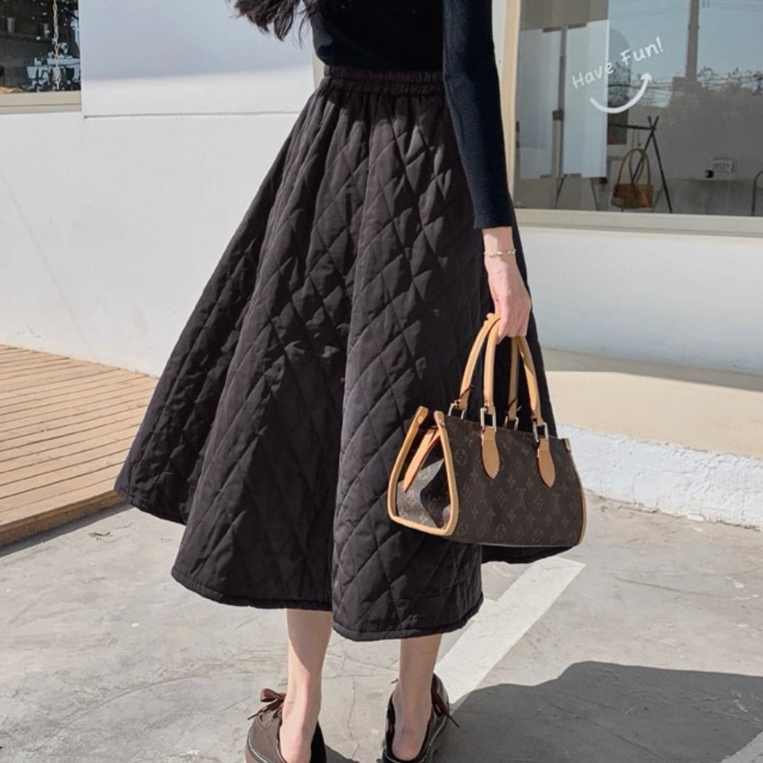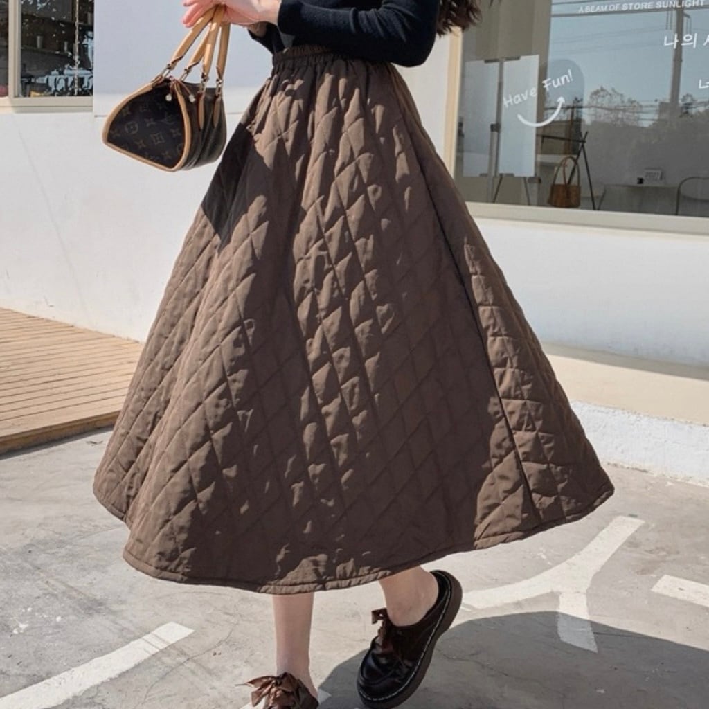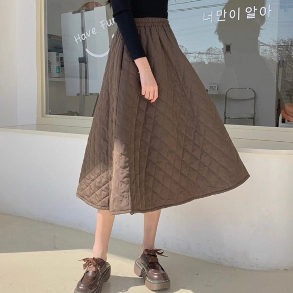 ふんわり広がるフレアシルエットが可愛いキルティングスカート。
