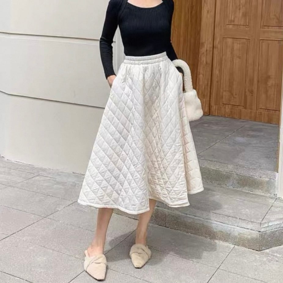 ふんわりシルエットキルティングフレアスカート 3color N00363