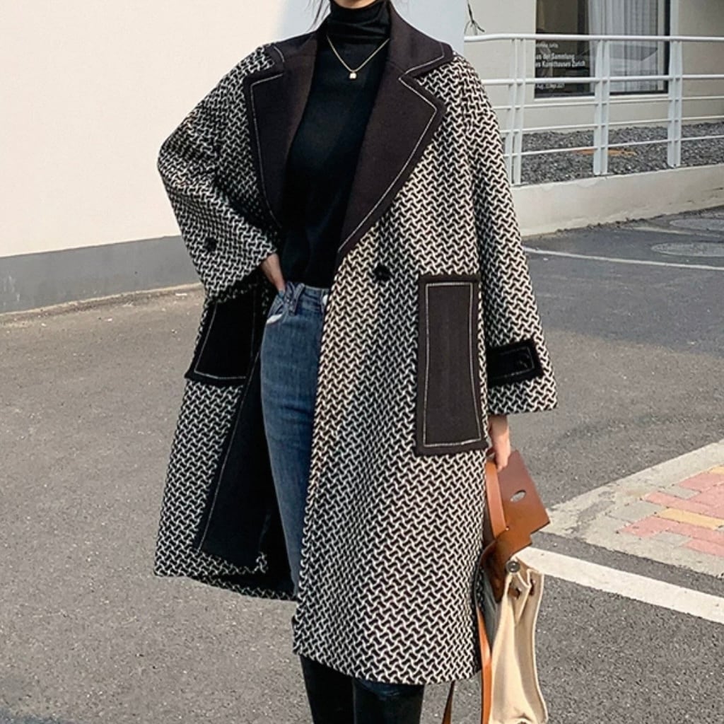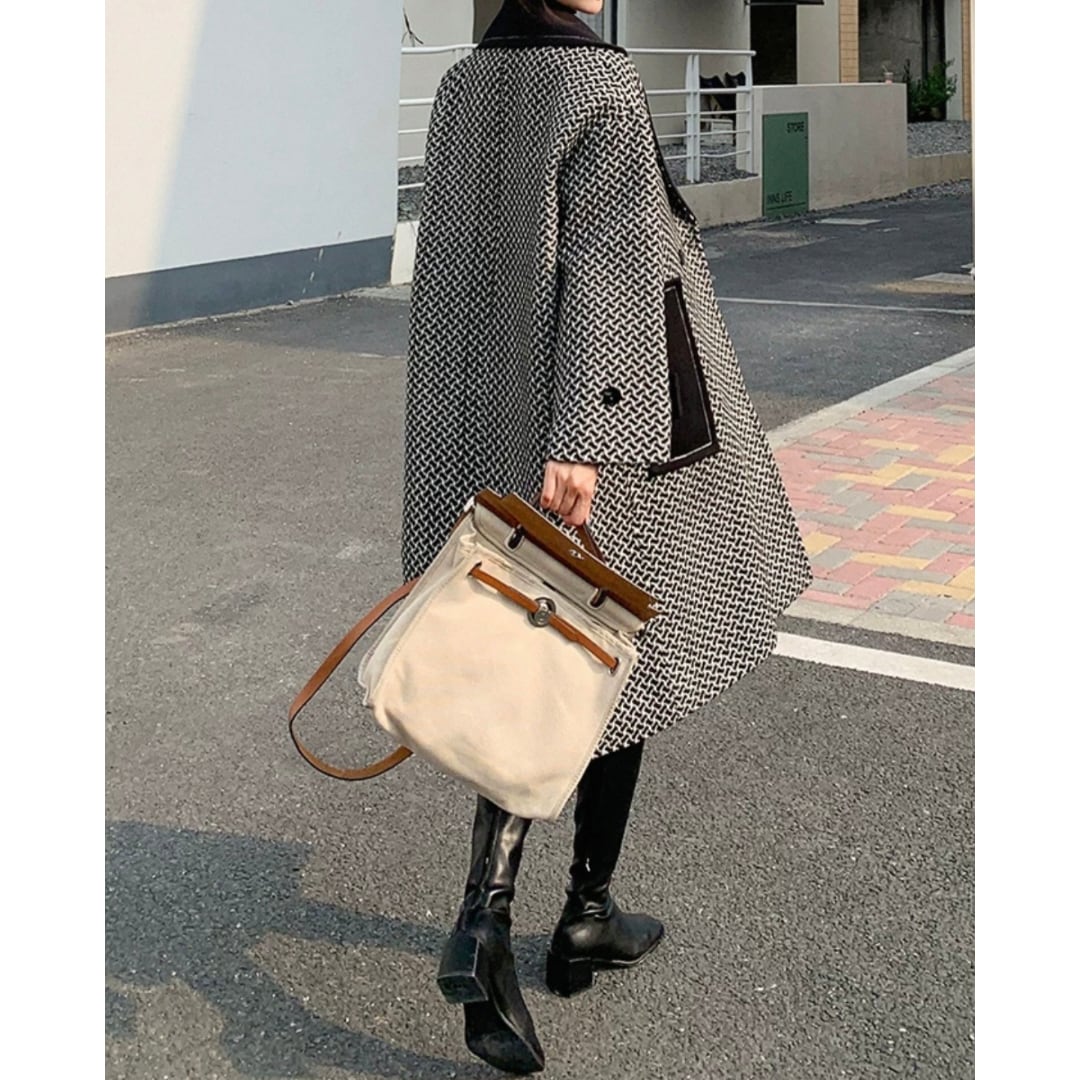 ホワイトステッチバイカラーロングコート N00368