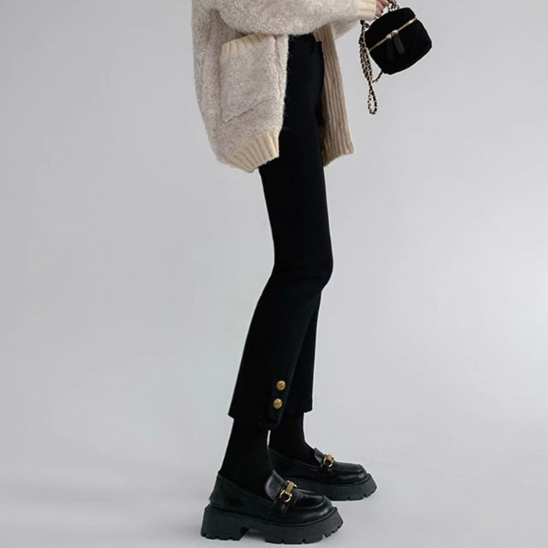 裏起毛ゴールドキルティングボタンパンツ N00470