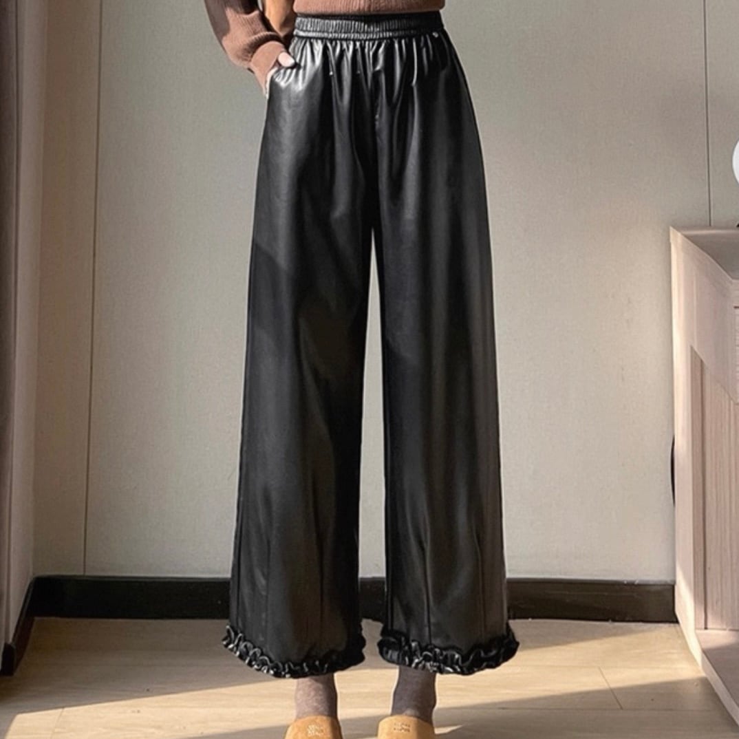 裏起毛フェイクレザー大人フリルパンツ 2color N00473