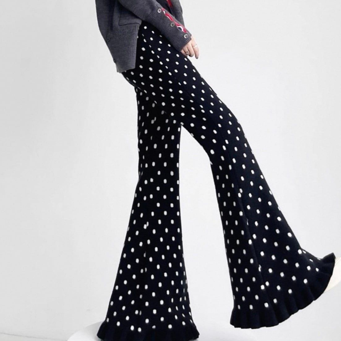 ドットニットフレアパンツ 3color N00475