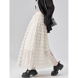華やかなチュールのティアードと、ドットが可愛いデザイン。