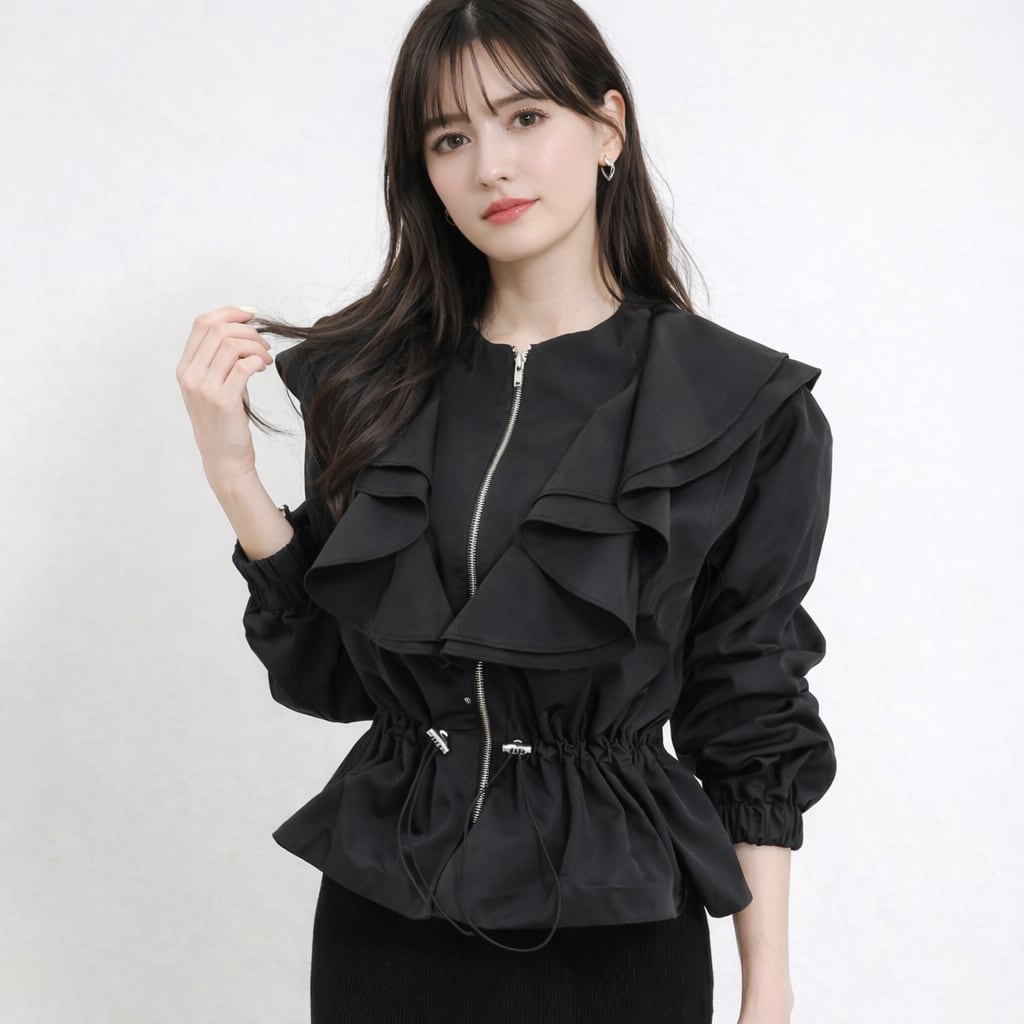 F 肩幅:43cm バスト:88cm 着丈:51cm 袖丈:49cm