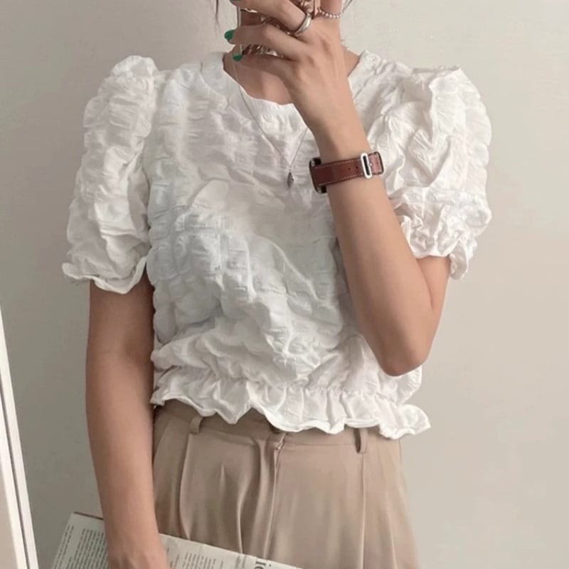 ポップコーンフリルトップス 2color N00644