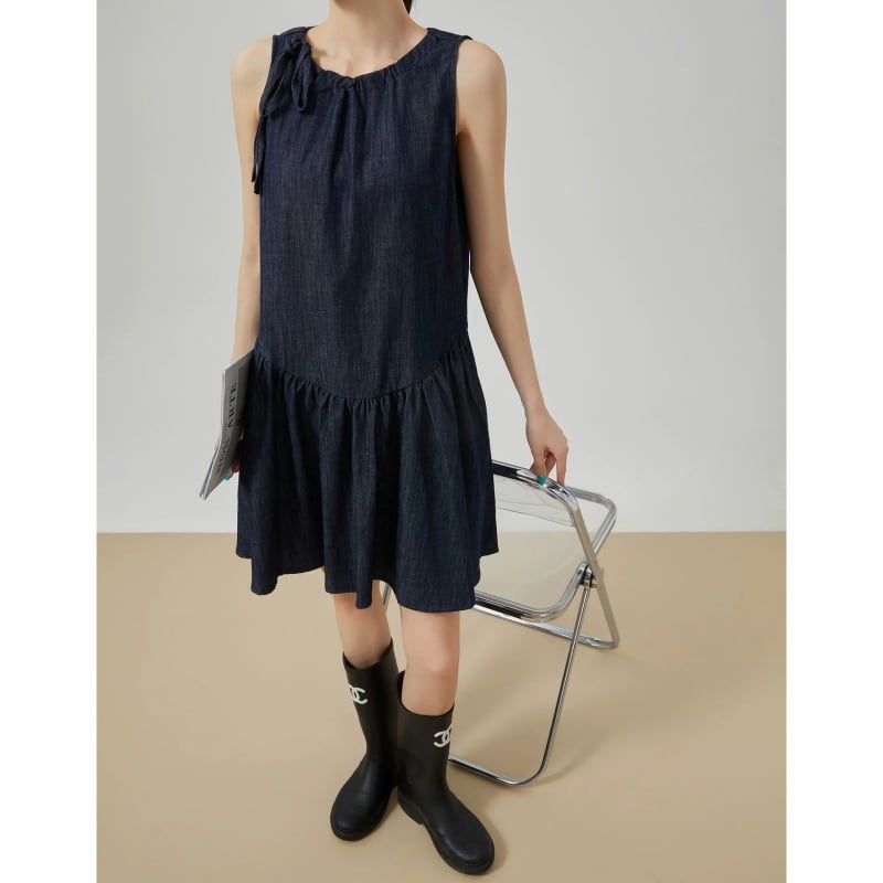 ネックリボンデザインデニムワンピース N00652