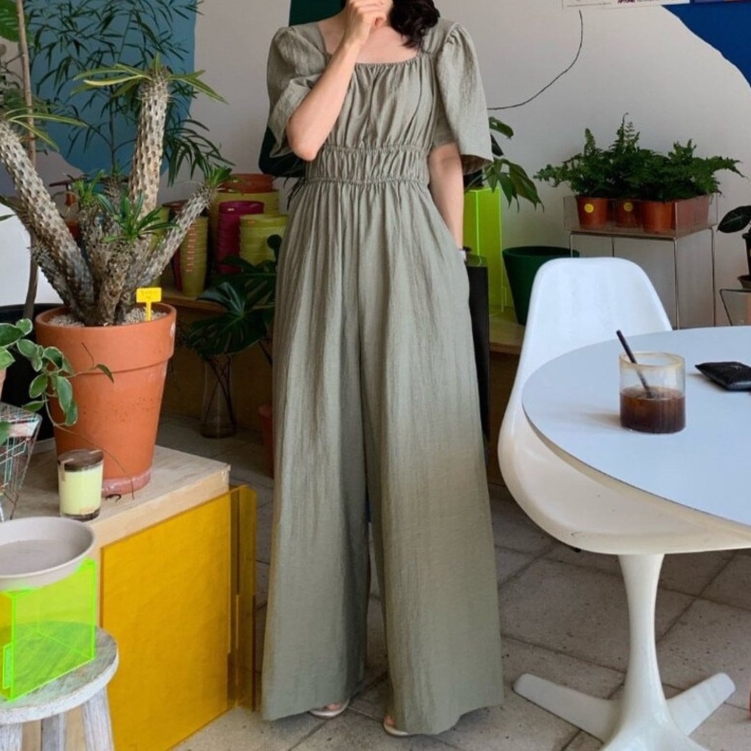 リネンライクスクエアネックデザインオールインワン 3color N00754
