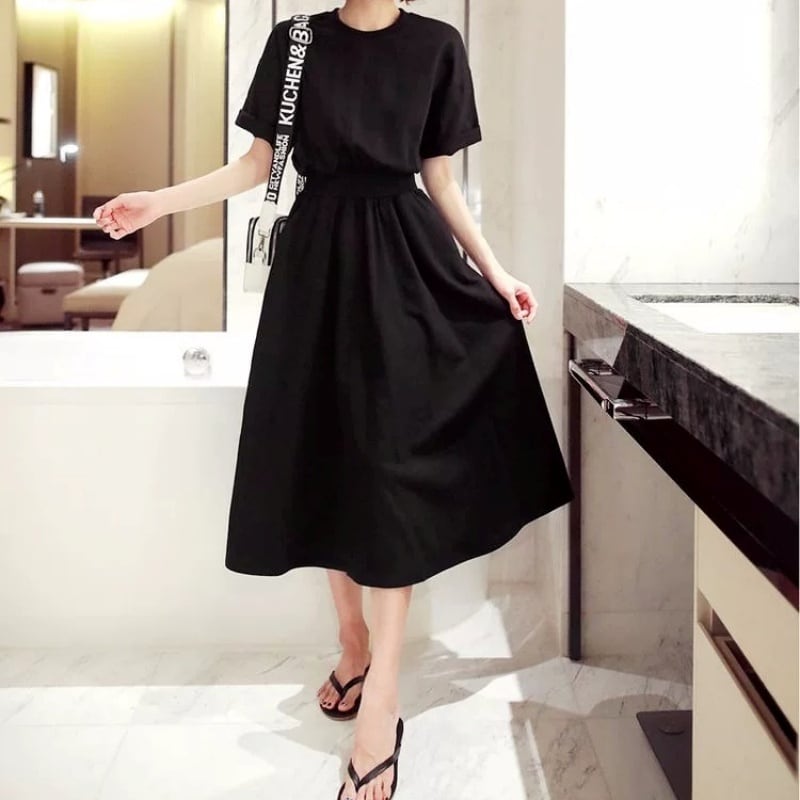 ウエストマークフレアデザインTワンピース 2color N00669